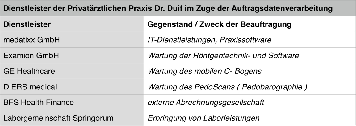 Prüfung der Röntgengeräte oder Softwaredienstleister u.U.. zeit- und teilweise Einsicht in Ihre